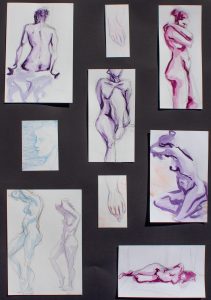 I very much enjoyed the work environment in which nude studies are conducted because everyone is focussing on the same thing at the same time, only paying attention to the shape and structure of the model’s body.